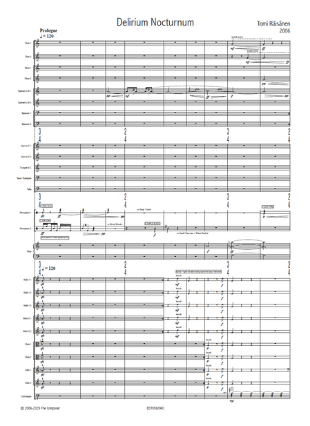'Delirium Nocturnum' is a chaotic journey marked by rapidly changing situations that often follow incomprehensible logic. The piece explores themes of restless sleep and nocturnal delusions, which may be caused by fever or perhaps an excessive consumption of wine. The moods fluctuate between joy and haunting nightmares, with imaginary landscapes shifting between paradise and purgatory. In this state of delirium, pink elephants and gnomes might be seen dancing in peculiar ways. TR, 2006